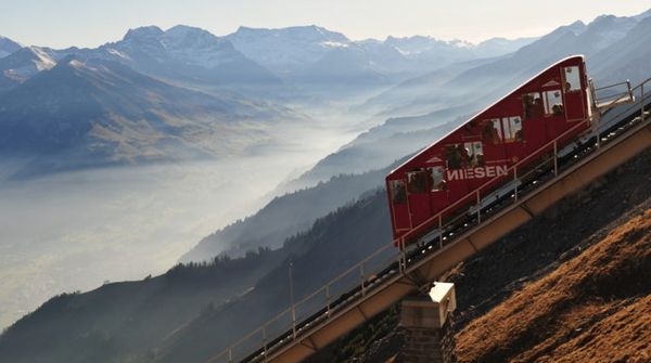 Der Niesen thront im Berner Oberland und gehört zu den Top-Attraktionen in der Region. Die längste Standseilbahn der Welt führt in zwei Sektionen von Mülenen, gelegen auf 693 Meter über Meer, auf 2‘336 Meter hinauf.